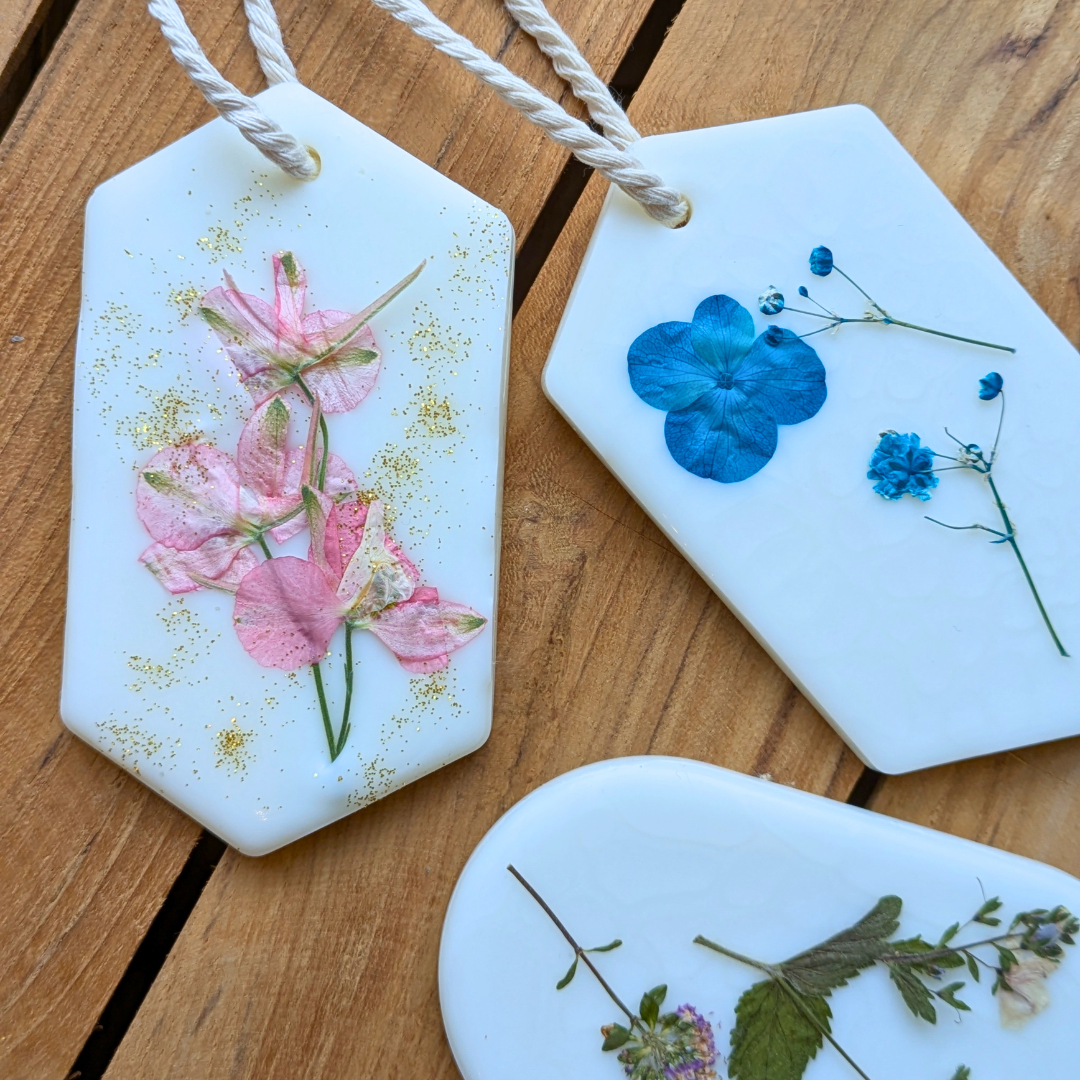 Während Deine Kerze in Ruhe aushärtet, gießt Du drei Duftanhänger mit einem Duft Deiner Wahl. Mit Glitzer, getrockneten Blüten und kleinen Details verleihst Du ihnen Deinen persönlichen Look. Verziert mit einem Band, eignen sie sich wunderbar zum Verschenken. Aufgehängt sorgen die Wachsanhänger in kleinen Räumen, im Auto oder im Wäscheschrank für einen angenehmen Duft