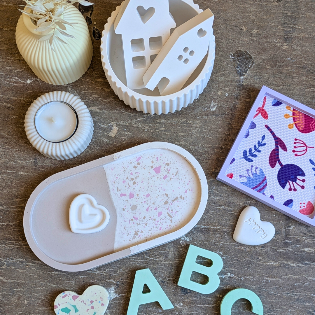 Neben der Terrazzo-Technik zeige ich Dir in diesem Workshop noch weitere kreative Möglichkeiten Schmuckschalen und Wohnaccessoires zu gestalten.